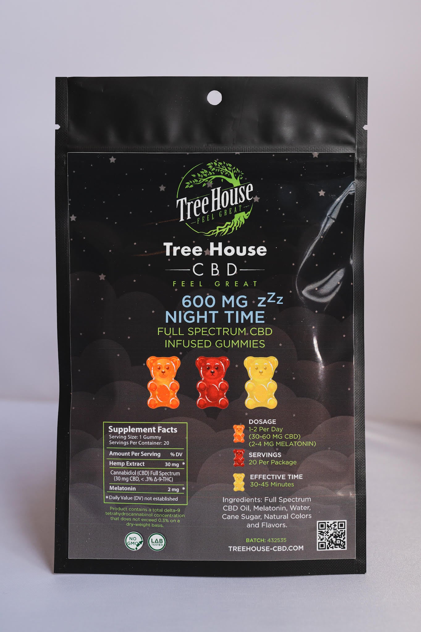Full Spectrum CBD Oil, Melatonin, Tapioca Syrup, Cane Sugar, Tapioca Syrup Solids, Juice Concentrate, Water, Pectin, Citric Acid, Sodium Citrate, Ascorbic Acid (Vitamin C), Natural Colors, Sunflower Oil, Carnauba Wax.